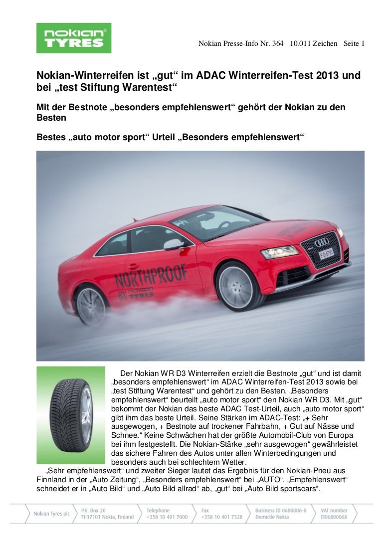 Nokian Winterreifen Sind Die Testsieger In Den Winterreifen Tests 12 Von Auto Bild Auto Motor Sport Und Autostrassenverkehr Uber Testsiege Fur Nokian Reifen In Diesem Winter Gut Vom Tcs Touring Club Schweiz Presseportal Schweiz Ch