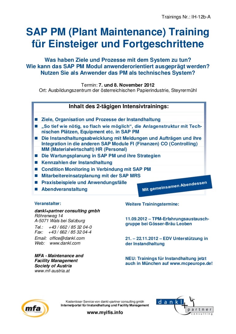 Sap Pm Training Fur Einsteiger Und Fortgeschrittene