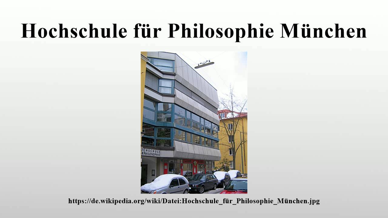 Munich School of Philosophy (German Hochschule für Philosophie München) is a small Jesuit higher education college in Munich, Germany founded in 1925 In the Germanspeaking countries it is the only institution of higher education exclusively specialized in the study of philosophy. Die Hochschule für Philosophie München steht in der seit über 400 Jahren geschätzten Bildungstradition des Jesuitenordens Sie steht allen offen, die sich für akademisch anspruchsvolle Studien der Philosophie interessieren unabhängig von deren Religion, Weltanschauung und sozialer Herkunft. Was ist der Geist?.