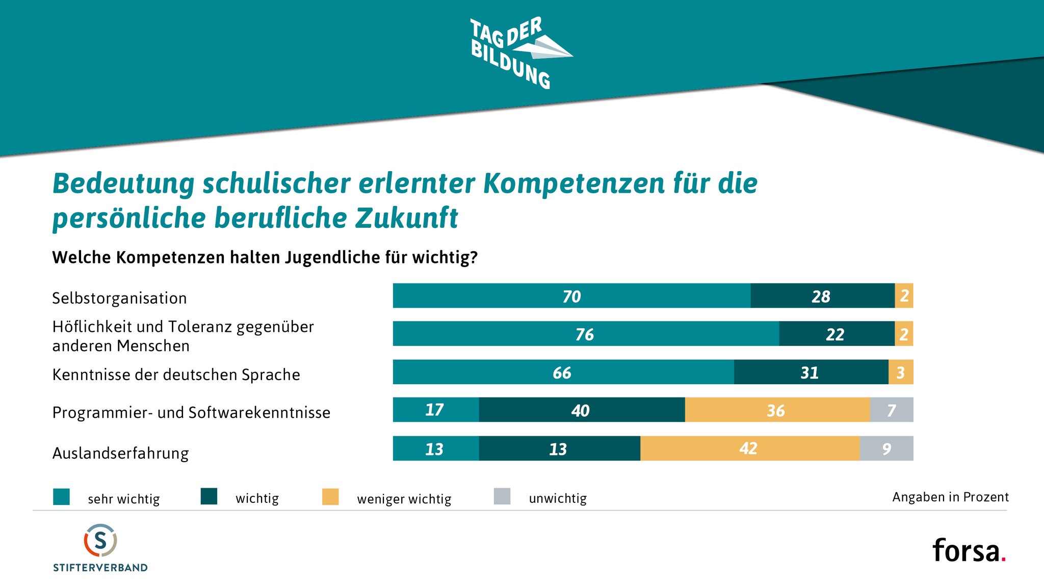 Der Bildung V Twitter Umfrage Unter 1 000 Jugendlichen Fast Alle Befragten Meinen Dass Selbstorganisation Hoflichkeit Und Toleranz Gegenuber Anderen Menschen Sowie Kenntnisse Der Deutschen Sprache Fur Ihre Berufliche Zukunft Wichtig Sind