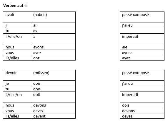 Franzosische Verben Auf Ir