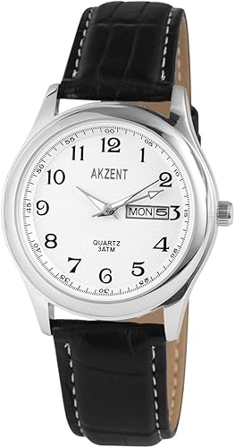 Akzent Herrenuhr Silber Schwarz Datum Wochentag Analog Quarz Metall Lederimitat Klassik Arabische Ziffern Armbanduhr Amazon De Uhren