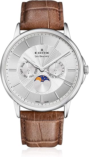 Edox Herren Armbanduhr Les Bemonts Moon Phase Complication Datum Wochentag Mondphase Analog Quarz 3 Ain Amazon De Uhren