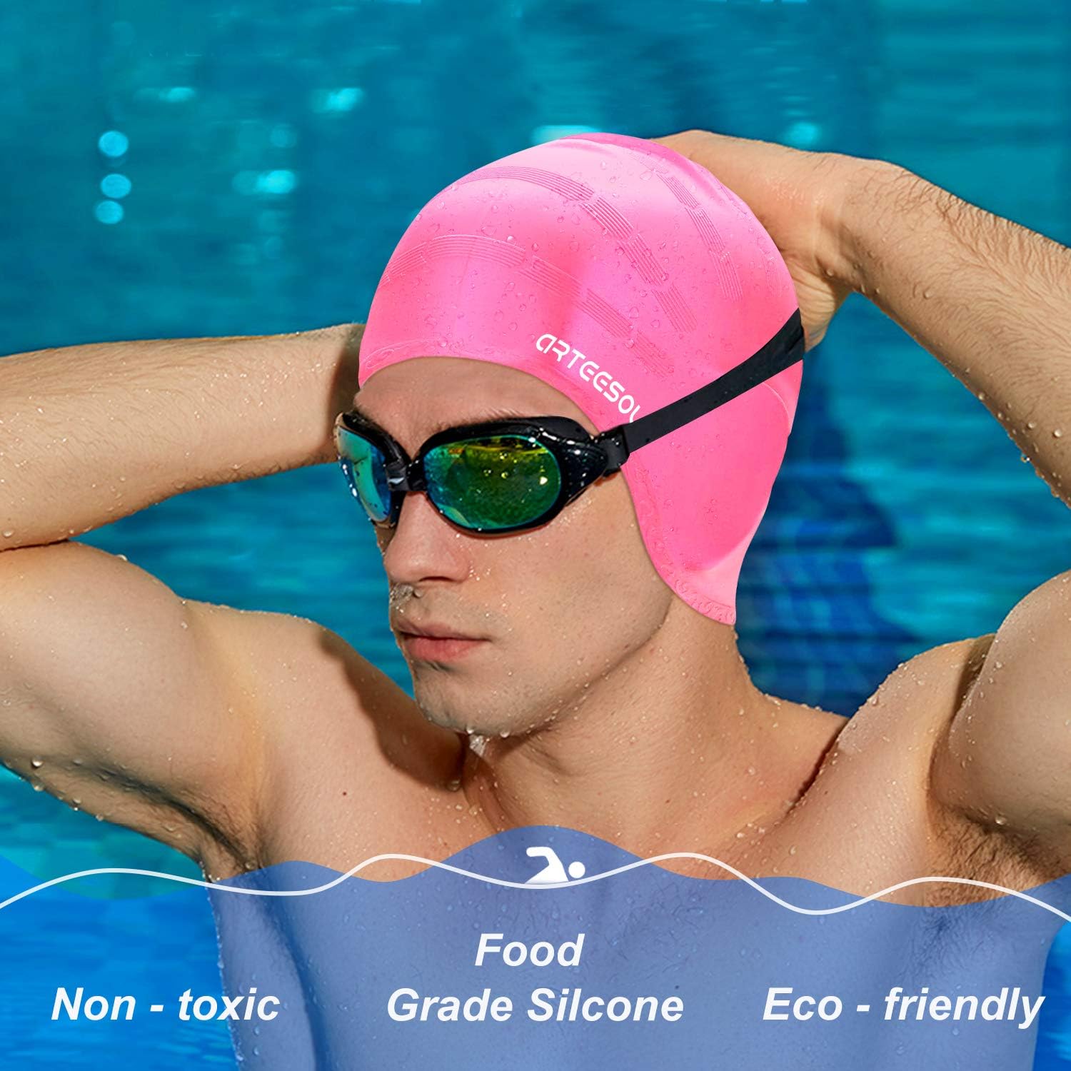 Arteesol Badekappe Silikon Badekappen Badehute Anti Rutsch Wasserdichte Badekappe Fur Lange Haare Frauen Und Manner