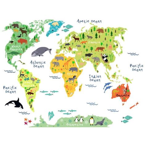 Kidz Collection Weltkarte Mit Tieren Englisch Weltkarte Fur Kinder Weltkarte Wandbild Wand