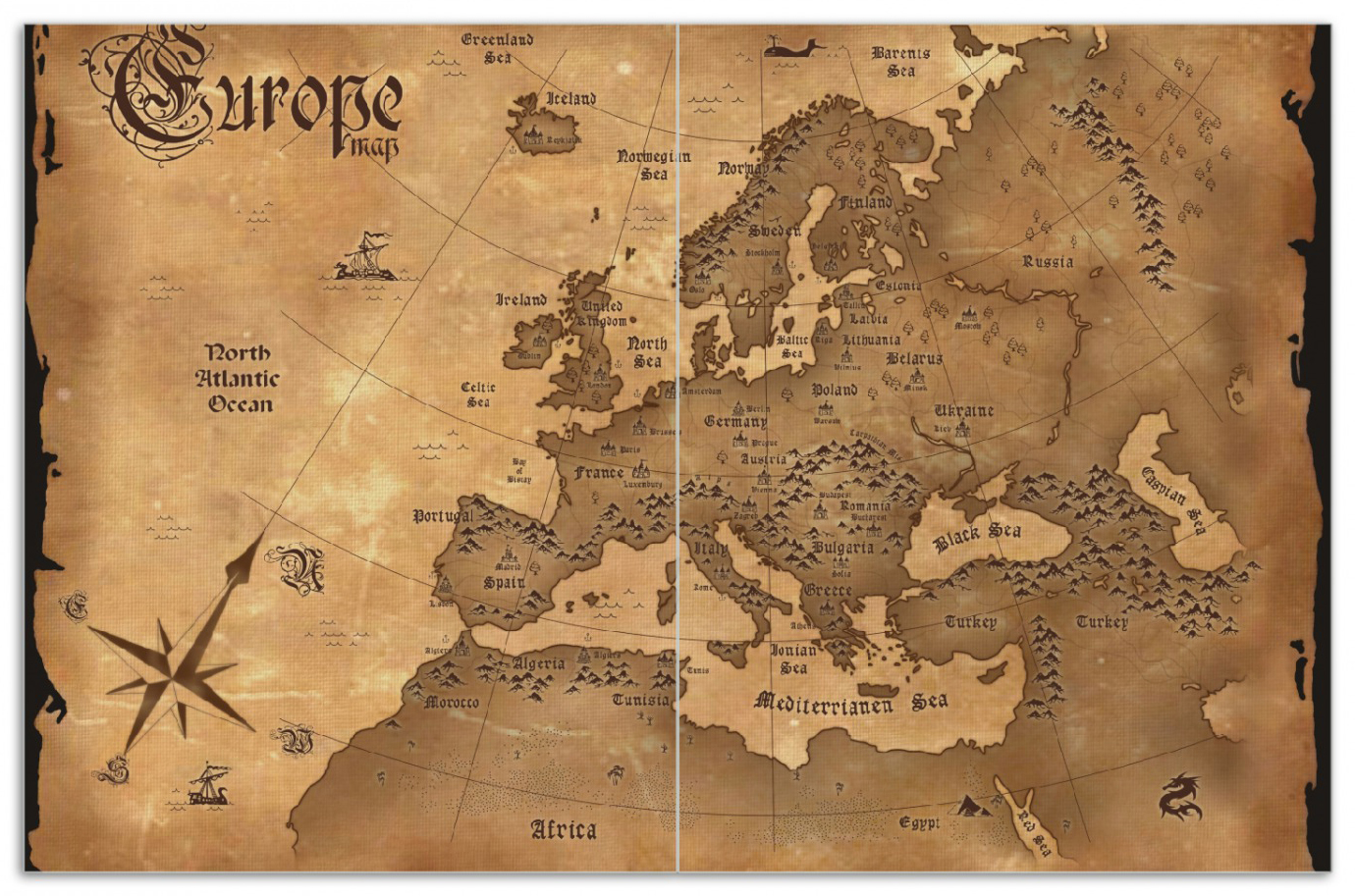 Fruhstucksbrettchen Alte Weltkarte Karte Von Europa In Englisch 1 Teilig Posterdepot De