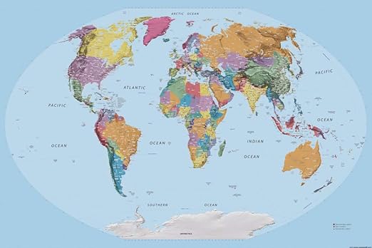 1art1 Karten Weltkarte In Englisch Poster Kunstdruck 1 X 80 Cm Amazon De Kuche Haushalt