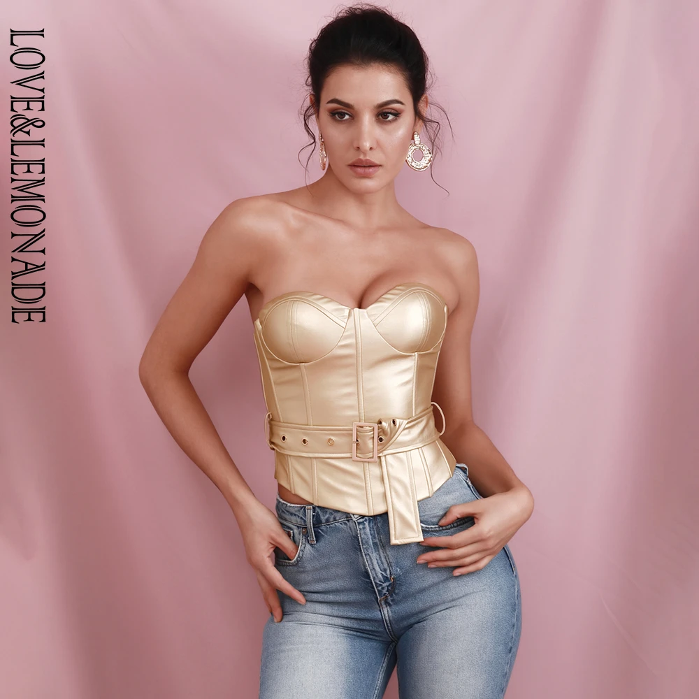 Love Lemonade Sexy Gold Tube Top Support Elastic Pu Top With Belt Lm250 Camis Aliexpress