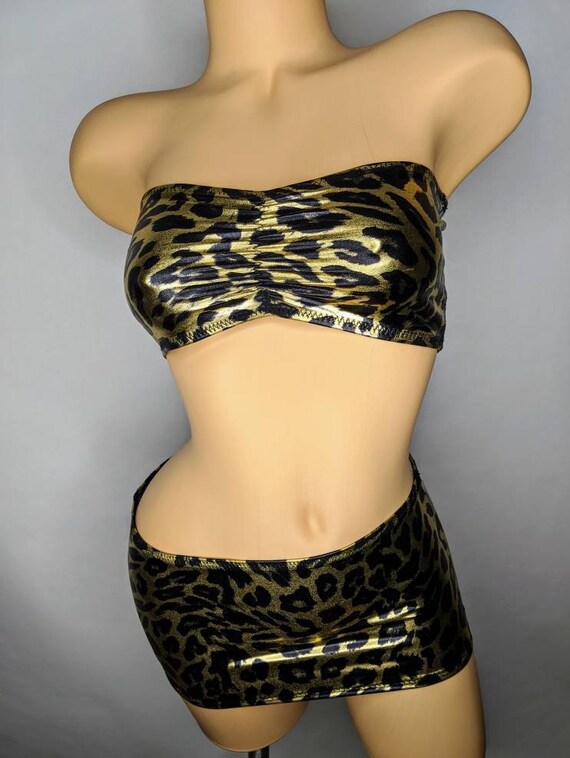 Metalic Gold And Black Cheetah Micro Mu Skirt And Tube Top Set Etsy