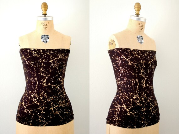 Tube Top Vintage 70s Black And Gold Metallic Splatter Paint Etsy