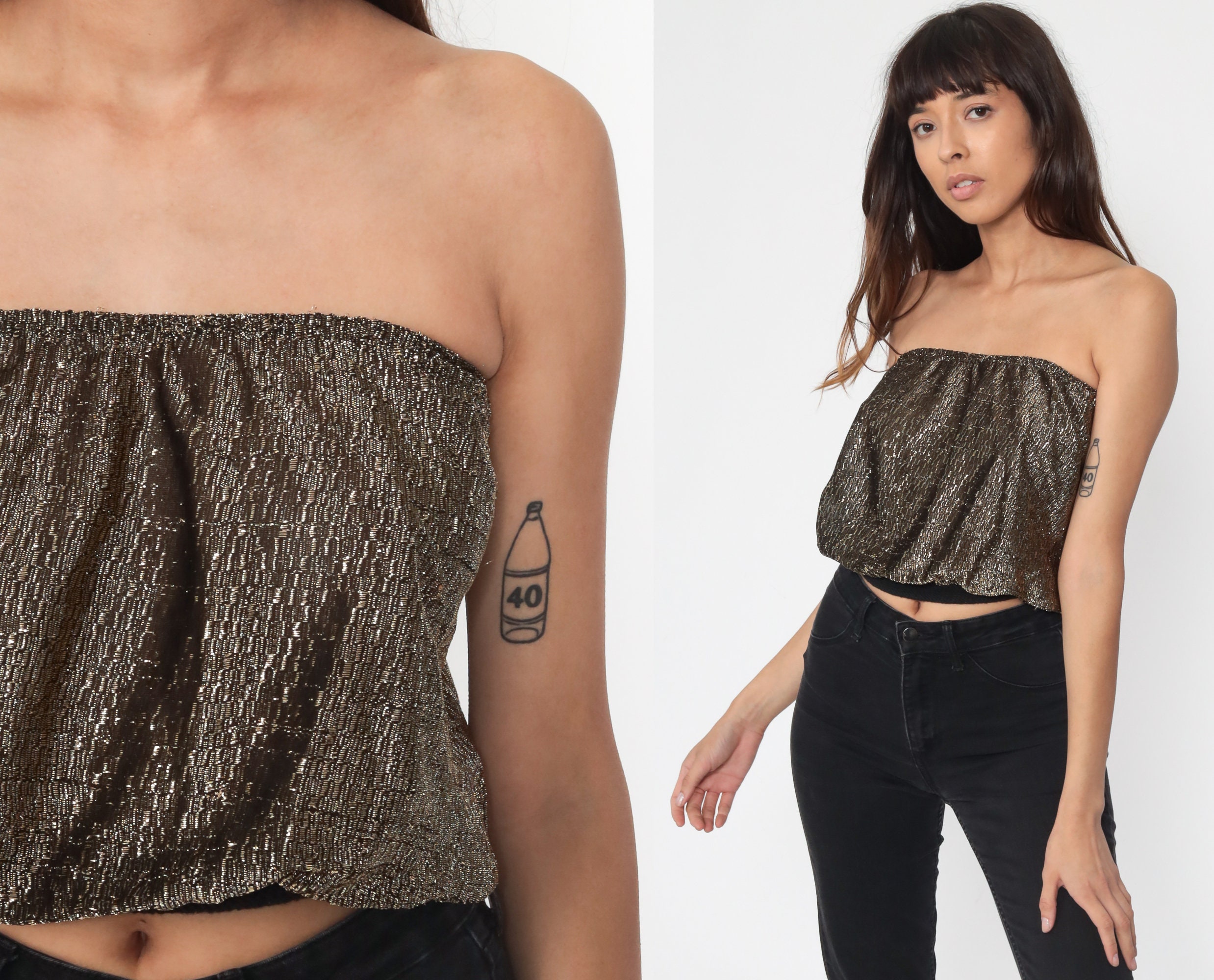 Gold Tube Top Crop Top Metallic Strapless Shirt 80s Blouse Lurex Shirt Disco Top 1980s Retro Cropped Shirt Vintage Extra Small Xs S