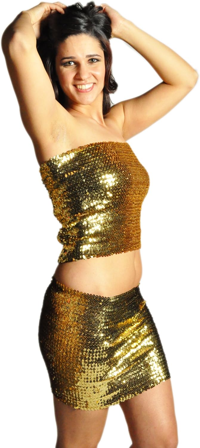 The Turkish Emporium Sequin Tube Top Skirt Glitter Disco Retro Sparkly Boob Tube Bandeau Clubwear Gold One Size Amazon Co Uk Clothing