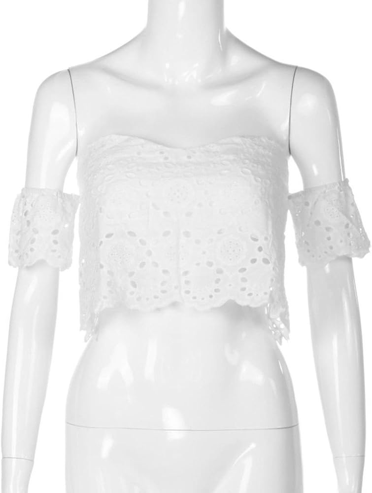 Damenmode Damen Bluse Hohle Spitze Schulterfrei Blusentop Kurzarm T Shirt Tunika Oberteil Kleidung Accessoires Sticisce Sredisce Si