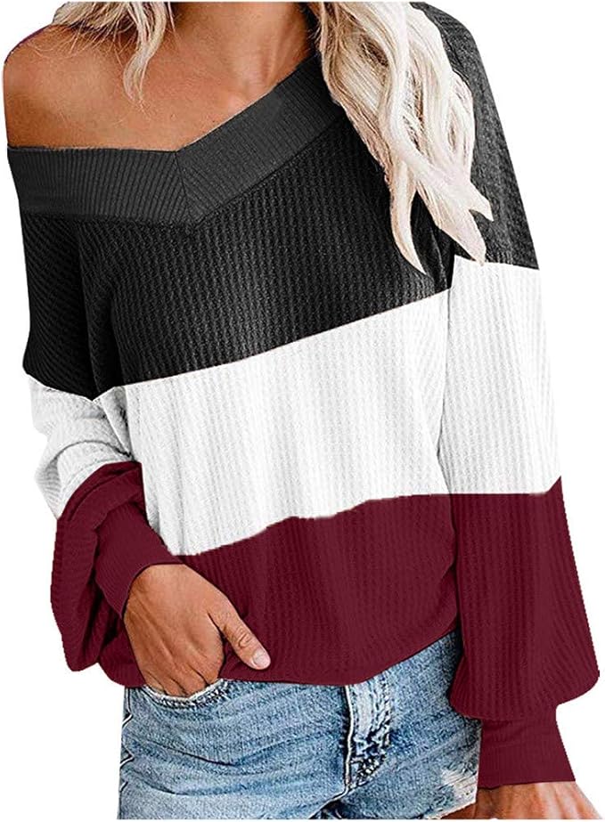 Bilderstander Damen Langarmshirt Bluse Biketafuwy Schulterfrei Oberteil Tops Herbst Carmen Damen Pullover Shirt Langarm Einfarbig Cut Out Loose Fit Top T Shirt Sweatshirt Burobedarf Schreibwaren