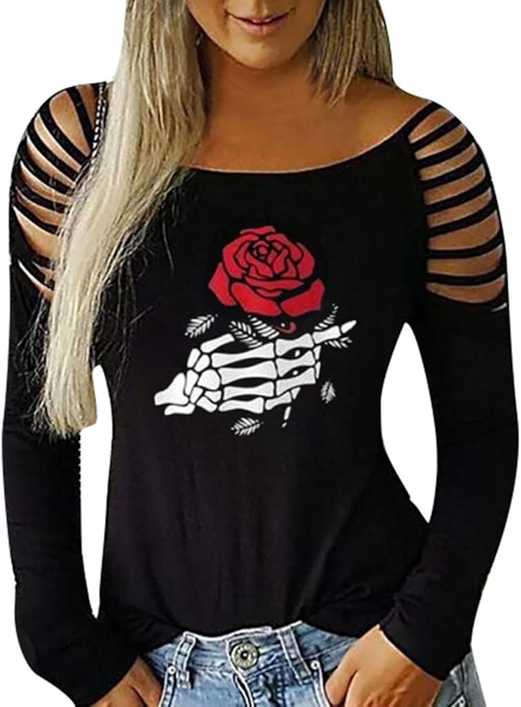 Damen Damen Strass Hohle Oberteile Langarm T Shirt Schulterfrei Party Blusen Top Shirt Kleidung Accessoires Sticisce Sredisce Si