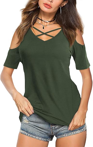 Fcostume Tshirt Damen Einfarbig Kurzarm Sommer Schulterfrei Rundkragen Tops Kalte Schulter T Shirts Oberteile Bluse Casual Blusen Tunika Set Gunstig Xdsebjvb Xdsebjvb 26 61