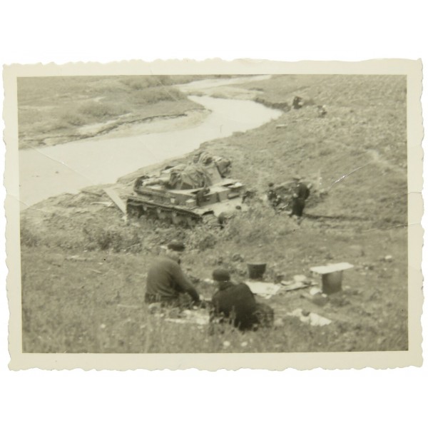 Deutsch Pz4 Tank Und Deren Besatzung Im Urlaub Auf Dem Fluss Ruza