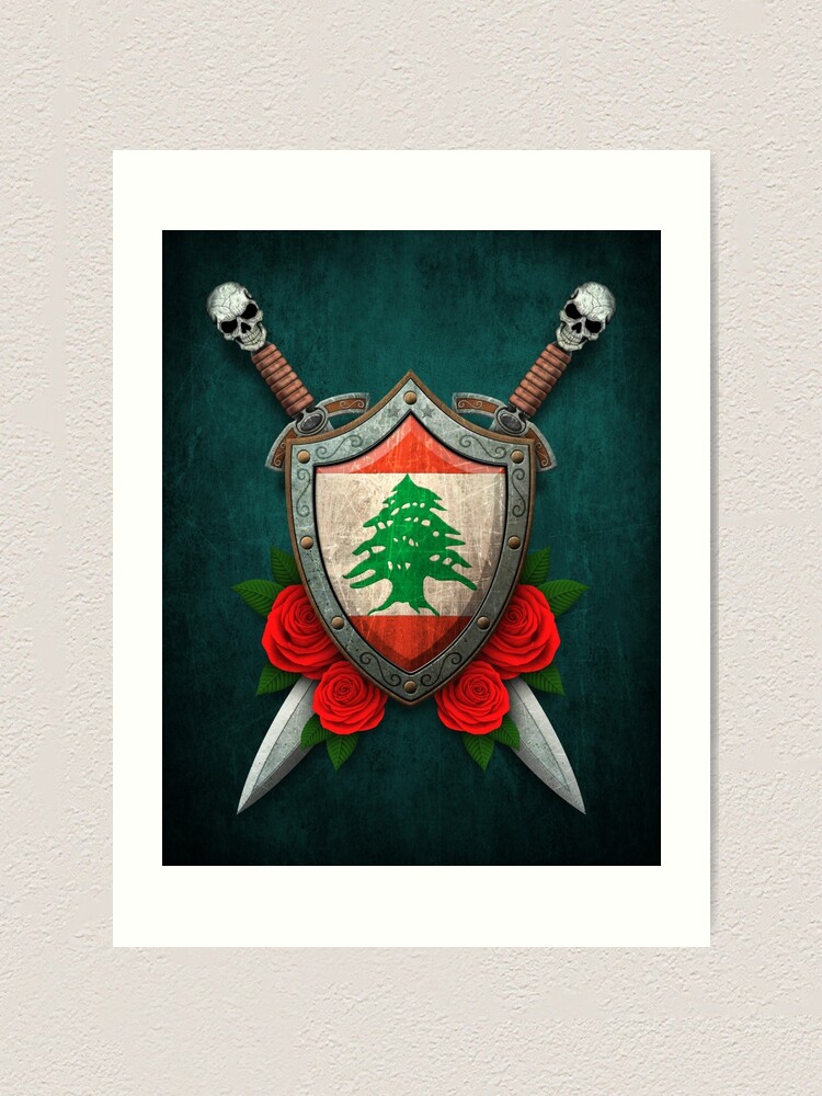Libanesische Flagge Auf Einem Abgenutzten Schild Und Gekreuzten Schwertern Kunstdruck Von Jeffbartels Redbubble