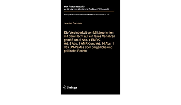 Die Vereinbarkeit Von Militargerichten Mit Dem Recht Auf Ein Faires Verfahren Gemass Art 6 Abs 1 Emrk Art 8 Abs 1 Amrk Und Art 14 Abs 1 Des Recht Und Volkerrecht 180 Band 180 Amazon De Bucherer Jeanine Bucher
