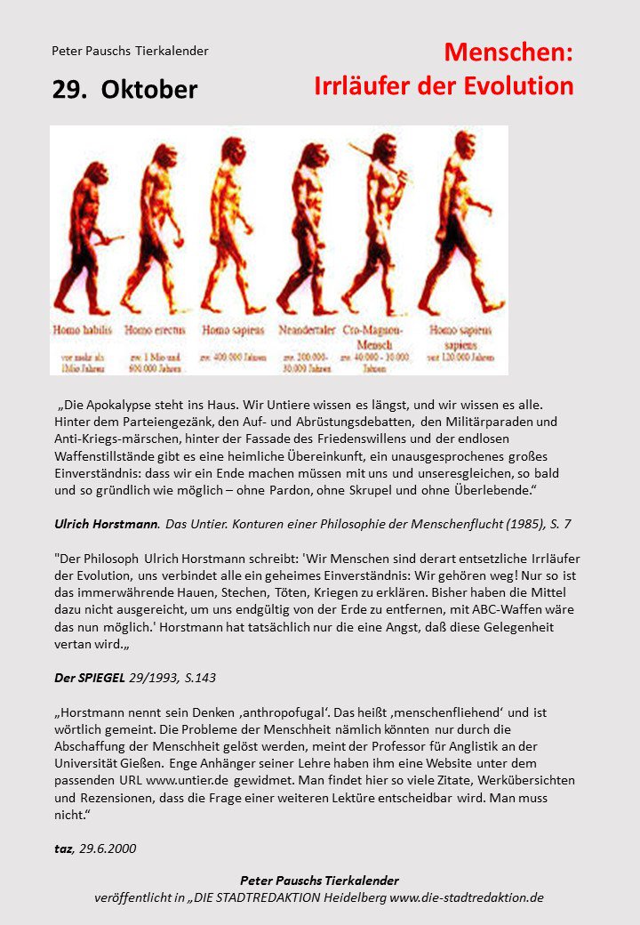 Die Stadtredaktion Peter Pauschs Tierkalender 29 Oktober 16 Menschen Irrlaufer Der Evolution T Co M4iwlfgcas