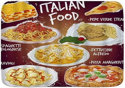 Popsastaresa Badematte Bad Teppiche Italienisches Essen Spaghetti Pepe Verde Steak Fettuccine Alfredo Pizza Ravioli Mit Rutschfester Ruckseite 29 5 X 17 5 Amazon De Kuche Haushalt