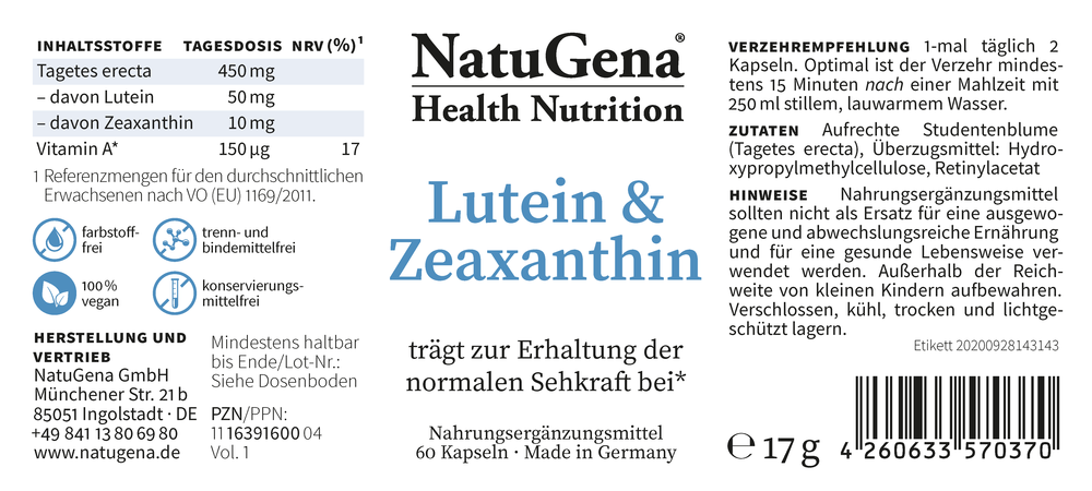 Lutein Zeaxanthin 180 Vegi Kaps Beste Hannes Qualitat Ebay
