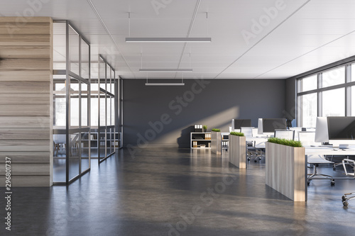 Gray And Dark Wood Open Space Office Interior Kaufen Sie Dieses Foto Und Finden Sie Ahnliche Bilder Auf Adobe Stock Adobe Stock