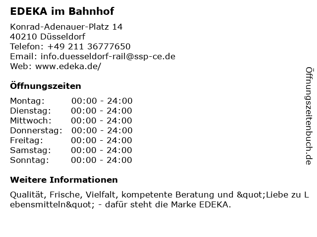 ᐅ Offnungszeiten Einkaufsbahnhof Dusseldorf Hbf Konrad Adenauer Platz 14 In Dusseldorf