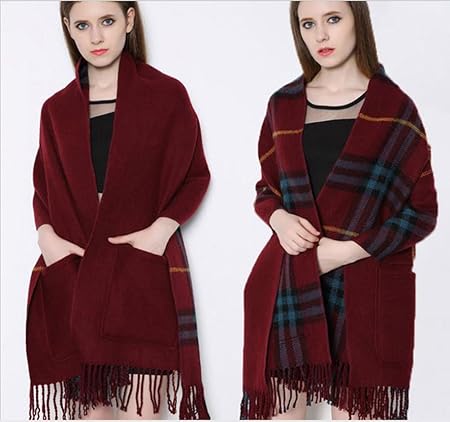 Kgm Accessories Plaid Decke Kariert Schal Mit Taschen Dark Rot Amazon De Garten