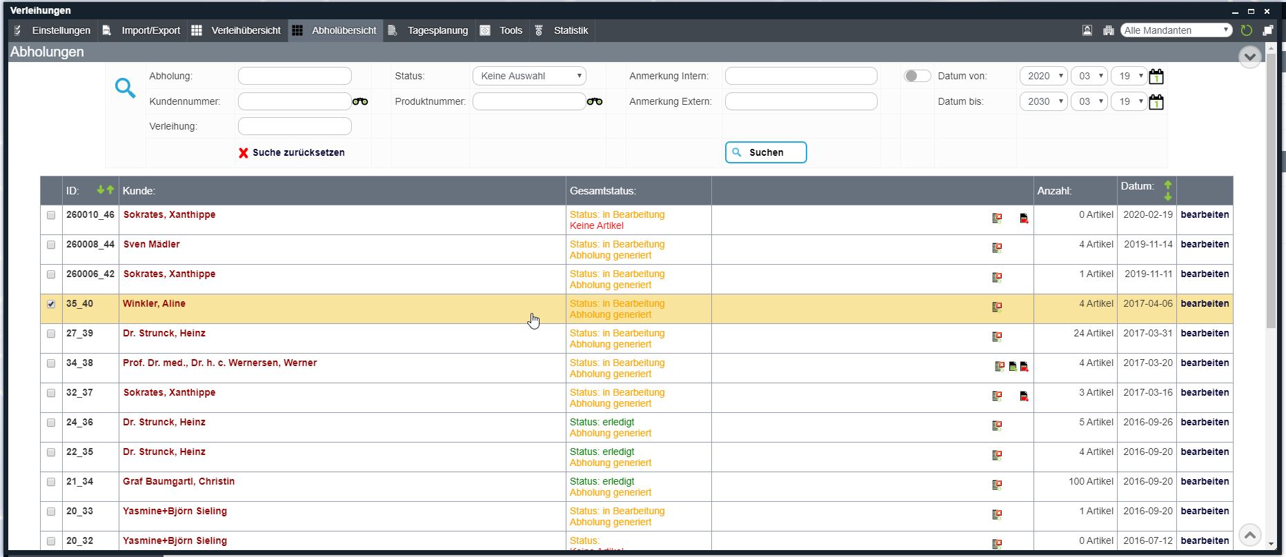 Verleihsoftware Crm Und Warenwirtschaftssystem