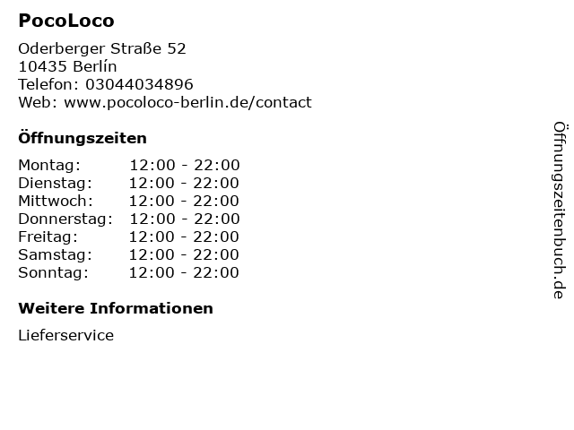 ᐅ Offnungszeiten Pocoloco Oderberger Strasse 52 In Berlin
