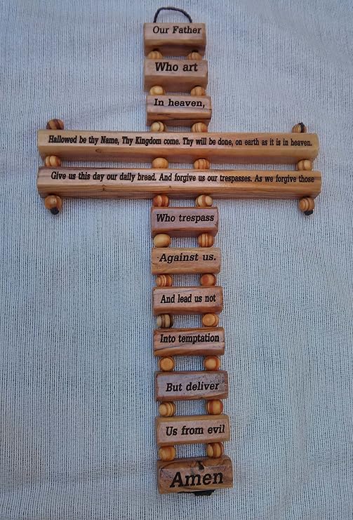 Vater Unser Auf Kreuz Gebet Olivenholz 24 13 Cm In Englisch Amazon De Kuche Haushalt