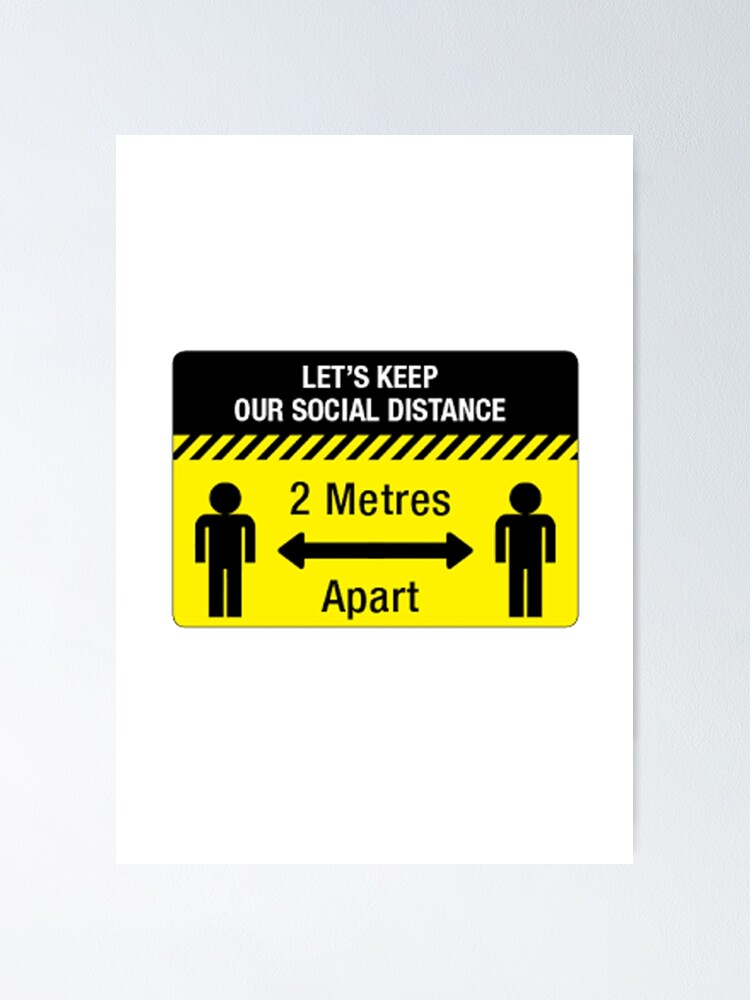 Please Keep Your Distance 2 Metres Rounded Sign Black And Yellow Poster By Socialshop Redbubble