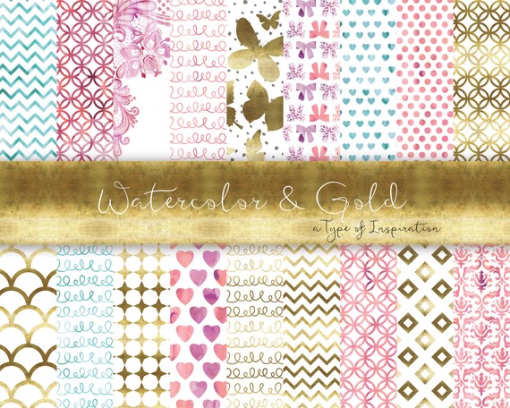 Aquarell Und Gold Papier Pack Digital Scrapbook Papier Drucken Etsy