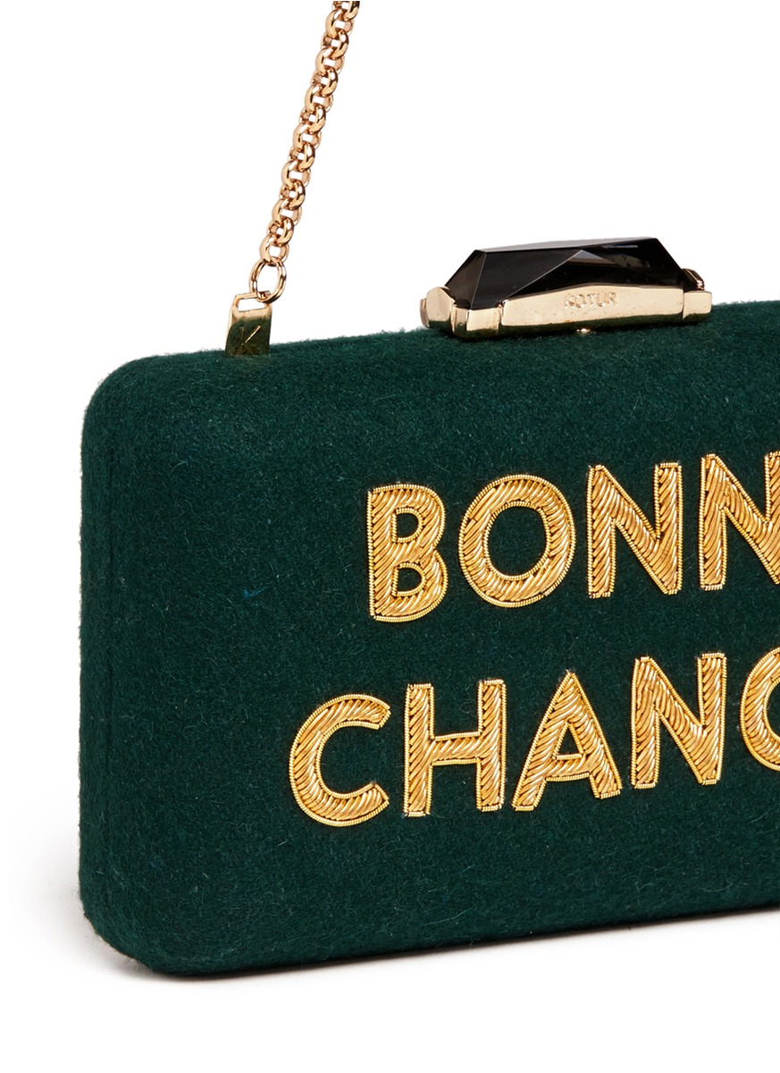 Kotur Bonne Chance Embroidery Felt Espey Maltese Clutch In Green Lyst
