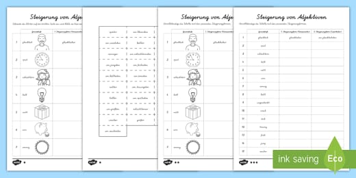 Arbeitsblätter zum Ausdrucken von sofatutorcom Wie steigere ich Adjektive?. Wer die englische Sprache mühelos anwenden möchte, muss sich näher mit der Grammatik auseinandersetzen Dazu gehören auch die englischen Steigerungsformen Adjektive verändern sich in Bezug auf Numerus, Kasus und Genus nicht Wie im Deutschen können sie jedoch gesteigert werden. Author Hermann J () 03 May 12, 0858;.