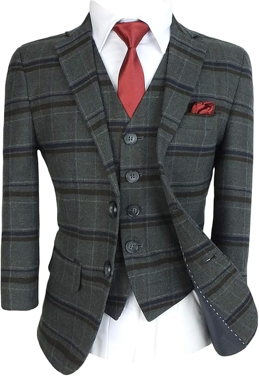 Sirri Jungen Tailored Fit Kohlengrauer Wolleffekt Englischer Karo Anzug Amazon De Bekleidung