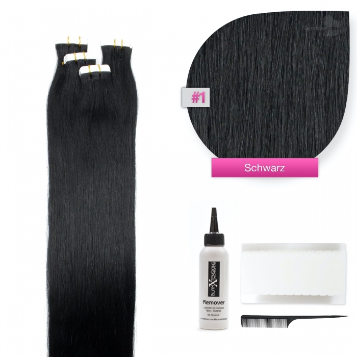 Tape In Extensions 01 Schwarz 100 Remy Echthaar Haarverlangerungen Gunstig
