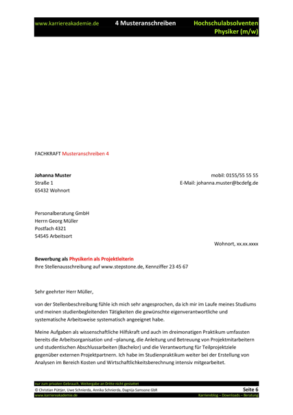 4 X Anschreiben Absolvent Physik M W Karriereakademie