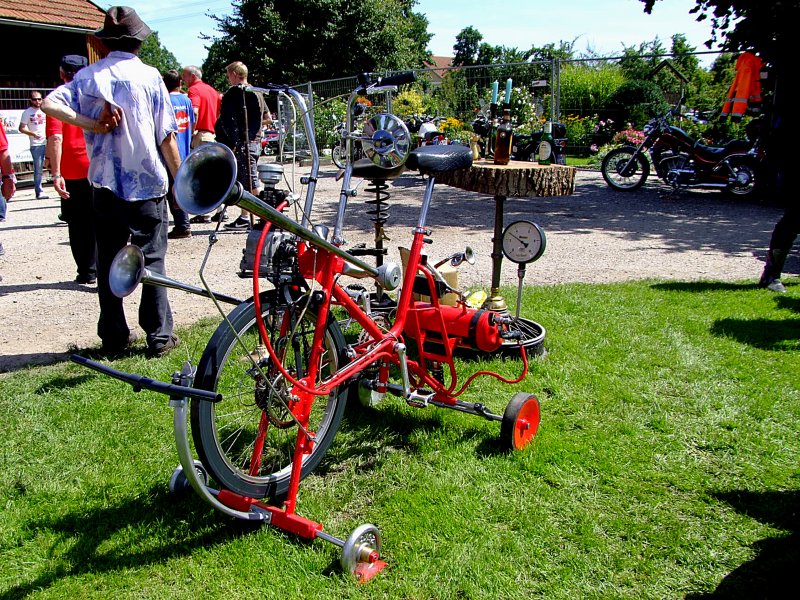 Trimmdichrad Der Extravaganten Sorte Wer Ordentlich In Die Pedale Gestrampelt Hat Kann Im Anschluss Die Komprimierte Luft Lautstark Uber Die Beiden Fahrzeugbilder De