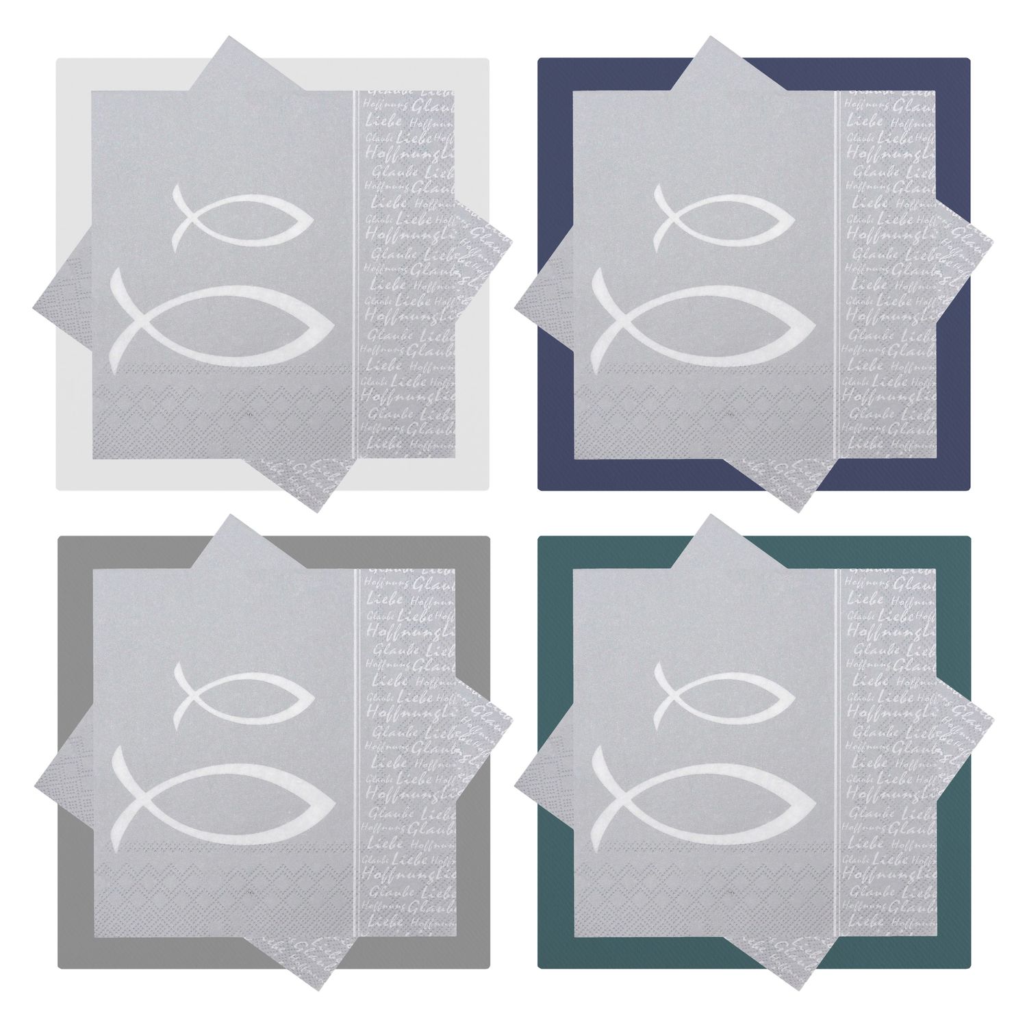 Servietten Glaube Fisch Silber Grau Tischdeko Kommunion Konfirmation Stuck