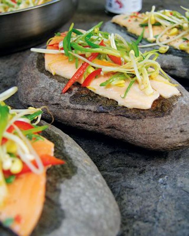 Fisch Und Gemuse Auf Dem Heissen Stein Gegart Rezept Eat Smarter