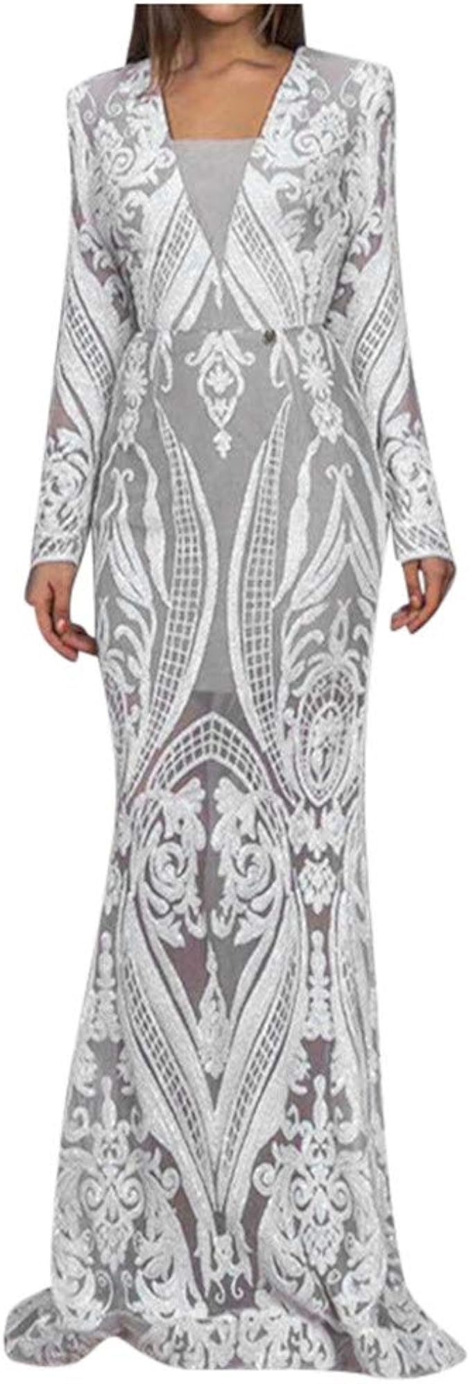 Jxq N Damen Chiffon Bestickt Lange Langarm Abendkleid V Ausschnitt Maxi Kleid Zweiteiliges Kleid Festlich Partykleid Amazon De Bekleidung