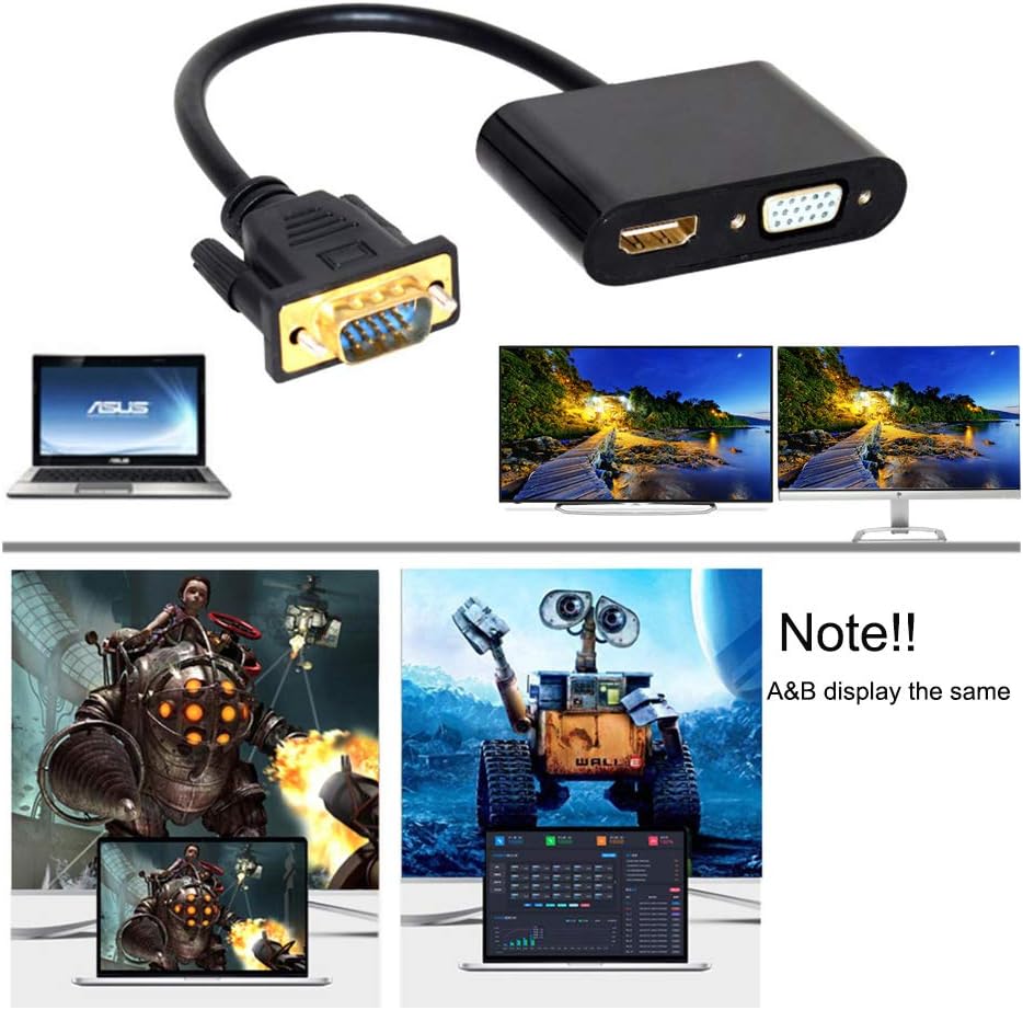 Bolaazul 1080p Vga Male In To Hdmi Vga Female Out Simultaneously Cable Adapter Converter Supports Dual Display For Pc Projector Hdtv Vga To Hdmi Vga Audio Video Cable Splitter With 3 5mm Audio
