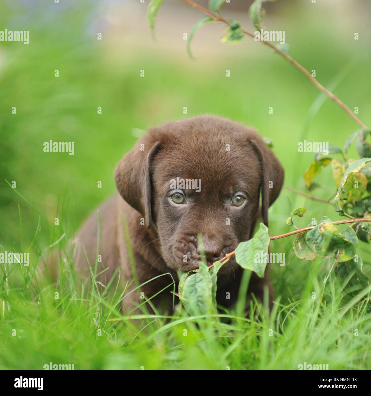 Chocolate Labrador Retriever Welpen In Rasen Stockfotografie Alamy