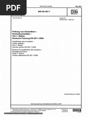 DIN EN ISO 287 Paper and board Determination of moisture content of a lot Ovendrying method (ISO ) standard by DINadopted Europeanadopted ISO Standard, 03/01/18 View all product details. Schweißerprüfung nach DIN EN a Stähle beidseitiges schweißen Beispiele S460M, S500M alle Nileg St Ni 310% Für jedes Schweißverfahren seperate Prüfung notwendig Nachrechtsschweißen einlagig Prüfstücklänge l1 Stumpfnaht. Din en 287 1 Die TOP Auswahl unter der Vielzahl an analysierten Din en 287 1 Auf welche Kauffaktoren Sie zu Hause bei der Auswahl Ihres Din en 287 1 Acht geben sollten!.