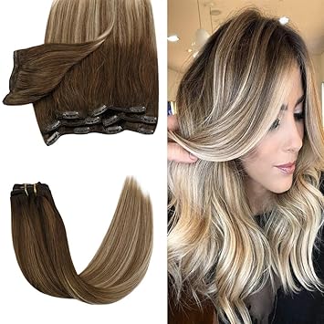 Laavoo Clip Extensions Echthaar Balayage Ombre Dunkelbraun Zu Mittel Braun Und Aschblond 100g 7stuck Extensions Echthaar Clip In Braun Doppelt Tressen Clip In Extensions Fur Kompletten Kopf 40cm Amazon De Beauty