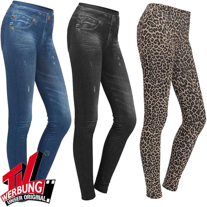3er Set Slim Jeans Leggings 34 36 O 38 40 Jeggings Shapewear Optik Body Former Leo Look Amazon De Bekleidung