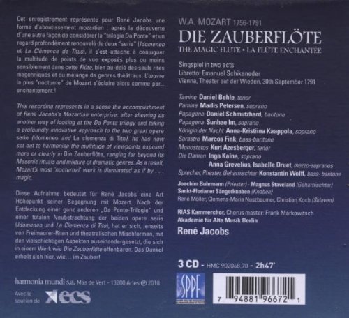 Wolfgang Amadeus Mozart Wolfgang Amadeus Mozart combined a diversity of elements in what was to be his final opera Precisely that blend of the apparently incongruous makes Die Zauberflöte as fresh and contemporary today as it was at its world première in 1791. Dies Schloß soll meine Warnung sein!. With Die Zauberflöte, René Jacobs continues his exemplary traversal of Mozart operas, having already recorded the da Ponte operas, La Clemenza di Tito, and Idomeneo Jacobs has not only a formidable knowledge of historically informed performance practice, but a bold inventiveness and originality, and in the comedies, a bubbling, earthy wit He is a master of comic timing, and there are many moments in Die Zauberflöte when he gives a lift or a pause to a phrase that's generally treated as.
