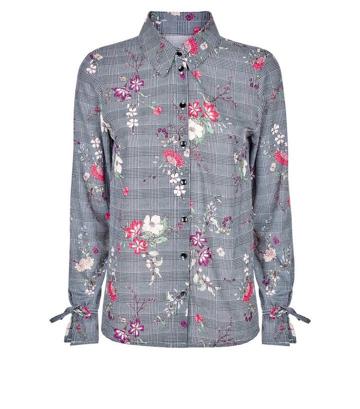 Innocence Schwarz Weiss Kariertes Hemd Mit Blumenmuster Und Bindearmeln New Look